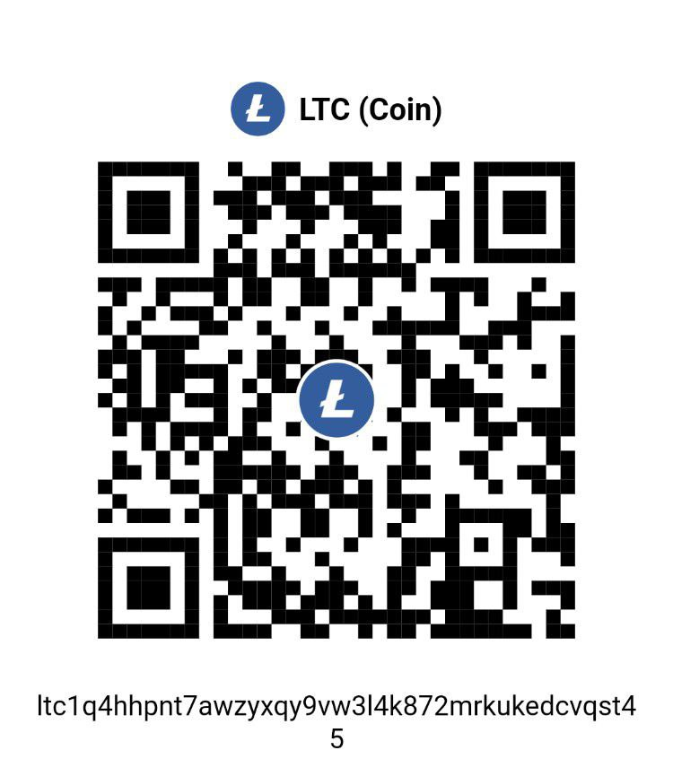 | LTC | ltc1q4hhpnt7awzyxqy9vw3l4k872mrkukedcvqst45 | show QR |